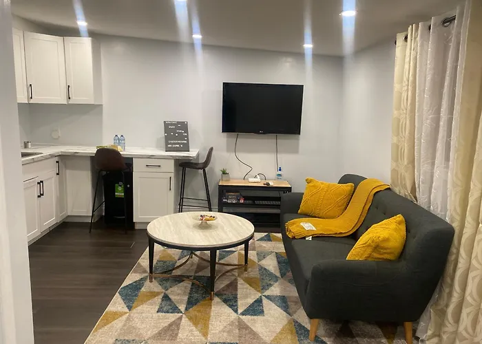 バ-リントンにある[Njoukwe Empire Suite]アパ-トは貸金庫 と24時間警備体制のあるベッドル-ムの1室の施設です. アパ-トはスペンサ-・スミス・パ-クから2.7キロで,ビ-チウェイ・パ-クから3.8キロのところに位置しています.